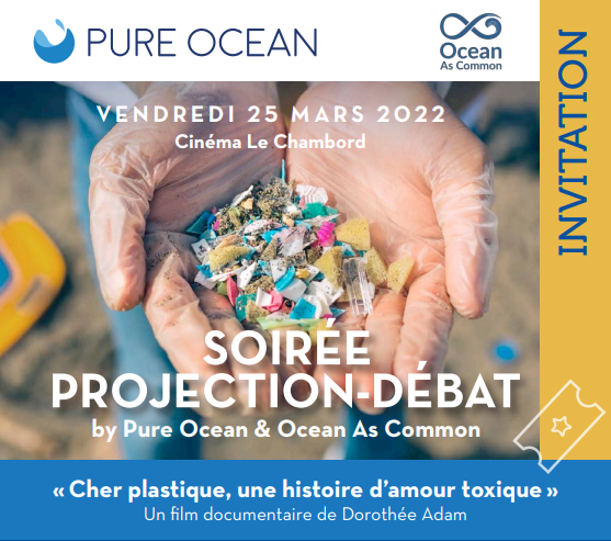 Pure Ocean vous invite à une projection-débat sur la pollution plastique avec notre invitée d’honneur, Catherine Chabaud, Eurodéputée, navigatrice, co-initiatrice de l’appel Océan Bien Commun de l’Humanité et narratrice du film « Cher plastique, une histoire d’amour toxique » de Dorothée Adam...