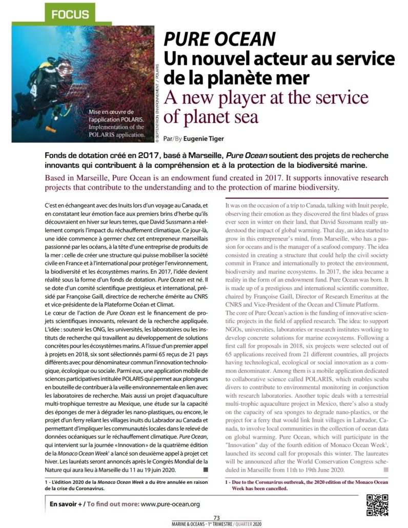 Pure Ocean dans le magazine Marine & Océans