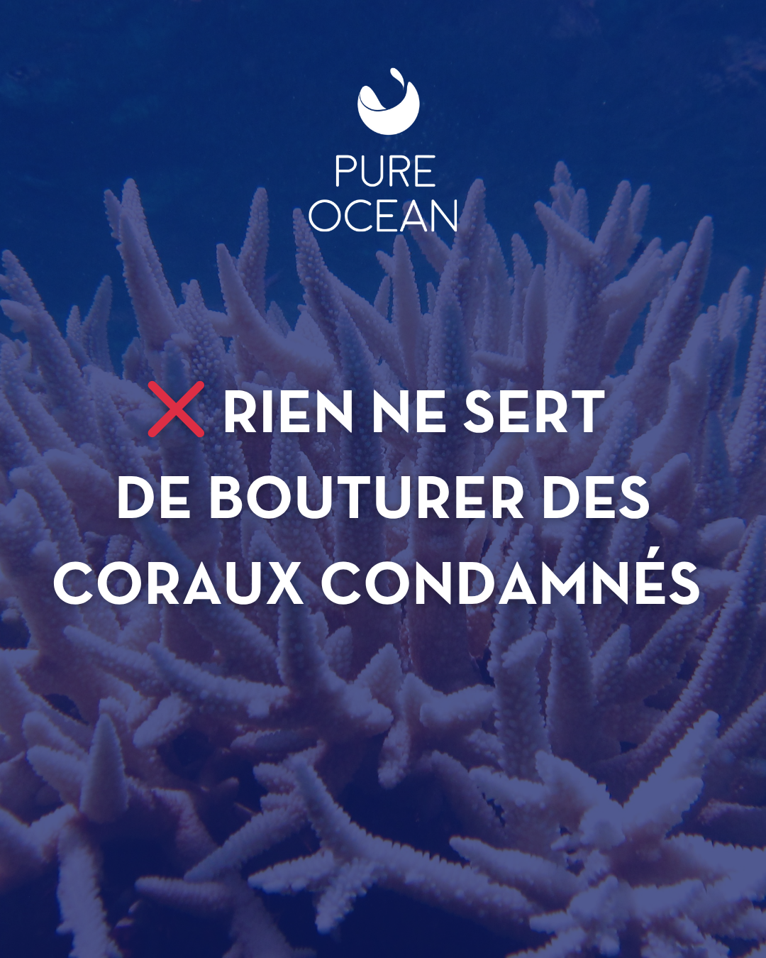 La quasi-totalité des initiatives actuelles de repeuplement des récifs consiste au bouturage de coraux adultes encore résistants, dans l’objectif à court terme de maintenir les services écosystémiques qu’ils rendaient (y compris les ressources de pêche et l’attractivité touristique). Mais ces colonies de même patrimoine génétique (clones) sont particulièrement sensibles aux infections bactériennes et virales, et n’offrent aucune garantie de résistance à un réchauffement plus poussé.